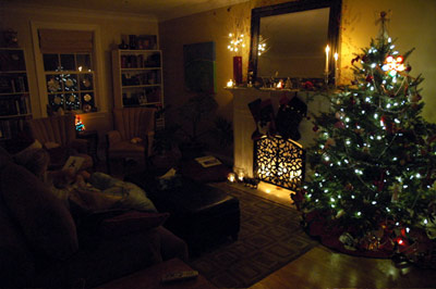 Gorgeous living room. It looks so warm and cozy and well Christmasy too.
