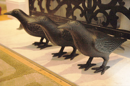 The other day we were walking past the window of a very cool store that specializes in antique architectural elements. (I have Googled for 10 minutes to find the actual name of it and have given up… it’s in Westboro Village though). They carry lots of lighting, fireplace grates, and they also have some bits of furniture. They have been known to carry some other interesting little items. (Like quills! They sell working quills.) Anyway, they had these cast iron crows in the window.